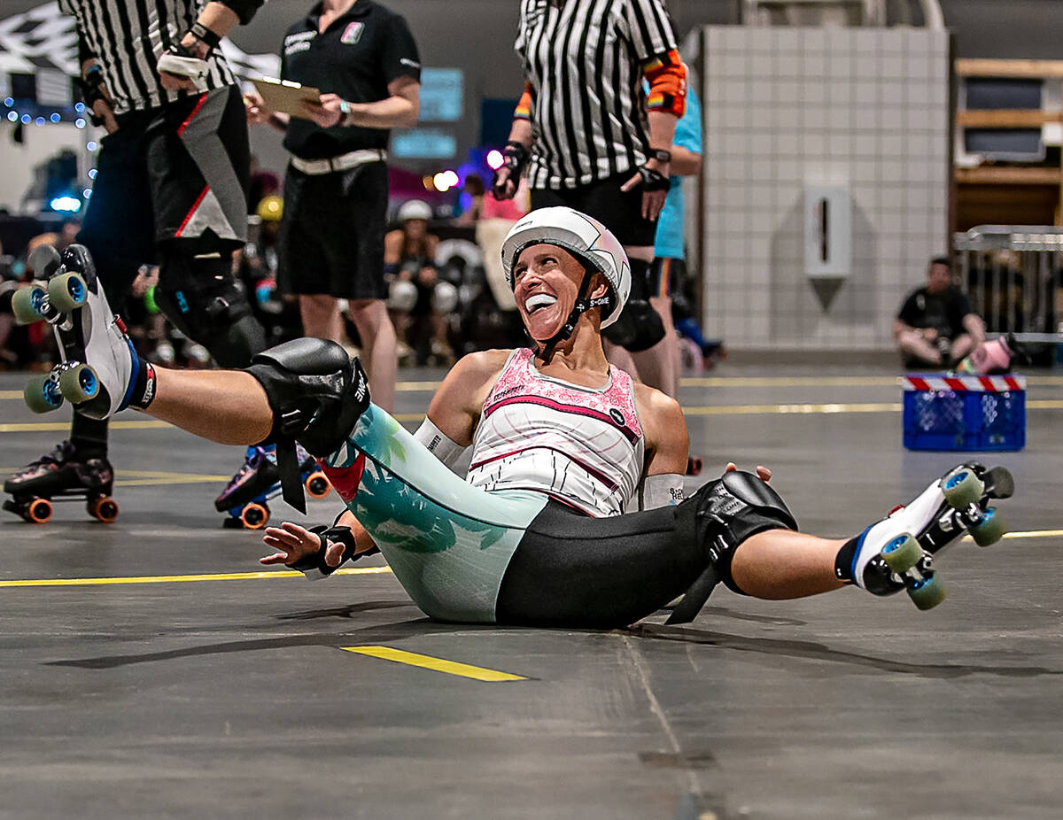 She was there in July 2006, when a corner of the Fremont Street Experience was turned into an impromptu roller derby track where competitors in shiny red bodysuits and camouflaged, G.I. Jane-worthy tank tops — a few of them sporting Luchador masks, because of course — traded blows beneath an afternoon sun as unrelenting as their pistoning arms and legs.