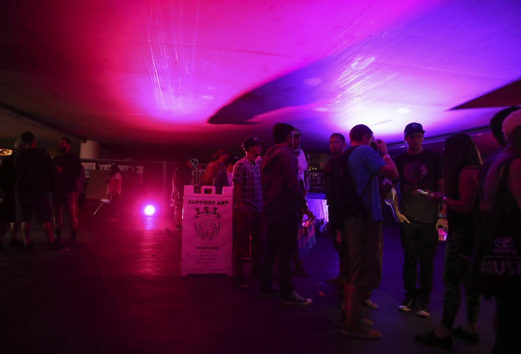 One floor up from the Cooling Station, the High Times Village offers unique entertainment. Many booths offer freebies by way of snack samples and interactive games. But one station features body marbling. A Black Light Visuals attendant will float your selected colors onto a vat of water, then dunk your arm in. The result is groovy, colorful and glow-in-the-dark.