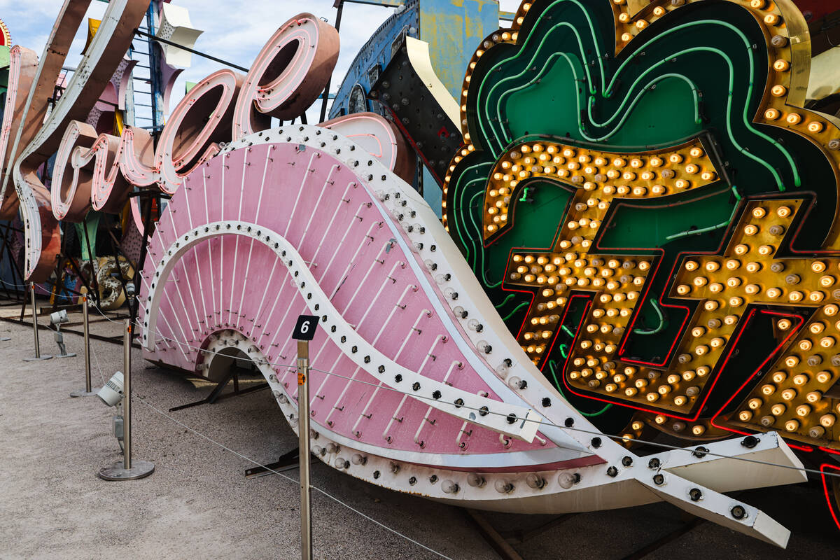 Everything about the Neon Museum has been rescued, from the visitor’s center that repurposed the lobby from the La Concha Motel to the signs in its boneyard. More than 250 unrestored signs are illuminated with ground lighting at sunset, while 23 signs are in working condition. Those lit signs run the gamut from the one that stood in front of the Chief Hotel Court on East Fremont Street around 1940, advertising its “steamed heat,” that’s the oldest functional sign on display to the Hard Rock Cafe guitar that’s more than 80 feet tall and was restored with approximately 4,110 feet of neon tubing.