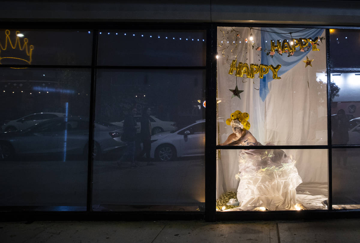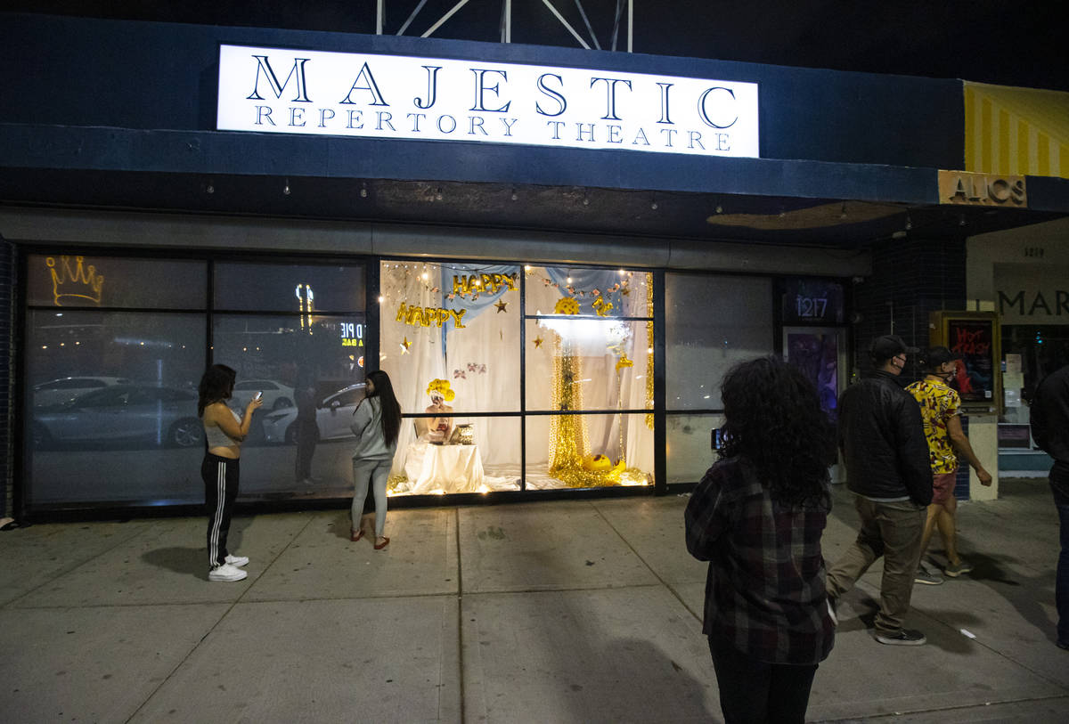 On Monday and Tuesday night, she seated herself in front of the broad windows of Majestic Repertory Theatre in the Arts District and performed the routine for unsuspecting passersby.