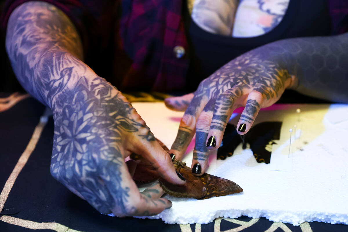 “We’re gonna stab him through that abdomen,” she instructs her charges, advising them not to poke the creatures through the wings — lest the holes be visible when they dry — showing her students the different ways they can be displayed: belly down, belly up or as if suspended in flight.