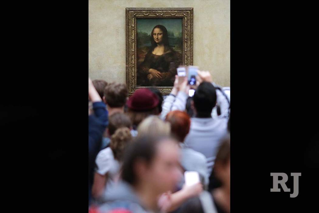 The Mona Lisa oil painting, among the world’s greatest art treasures, hangs in the Louvre.