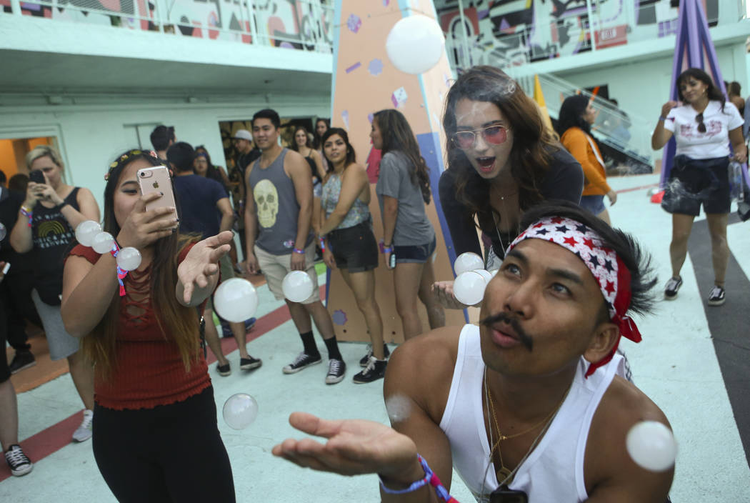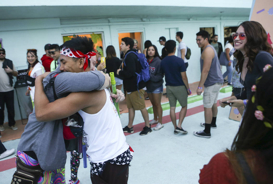 A crowd formed around him inside Life is Beautiful’s “Art Motel” on Saturday evening as people turned away from the artistically themed rooms.