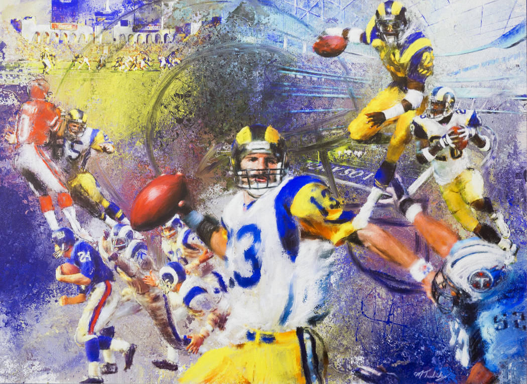 There are 30 art pieces available in the show at Bash, priced from $130 to $6,000. All buyers receive a certificate of authenticity with an NFL licensed-seal.