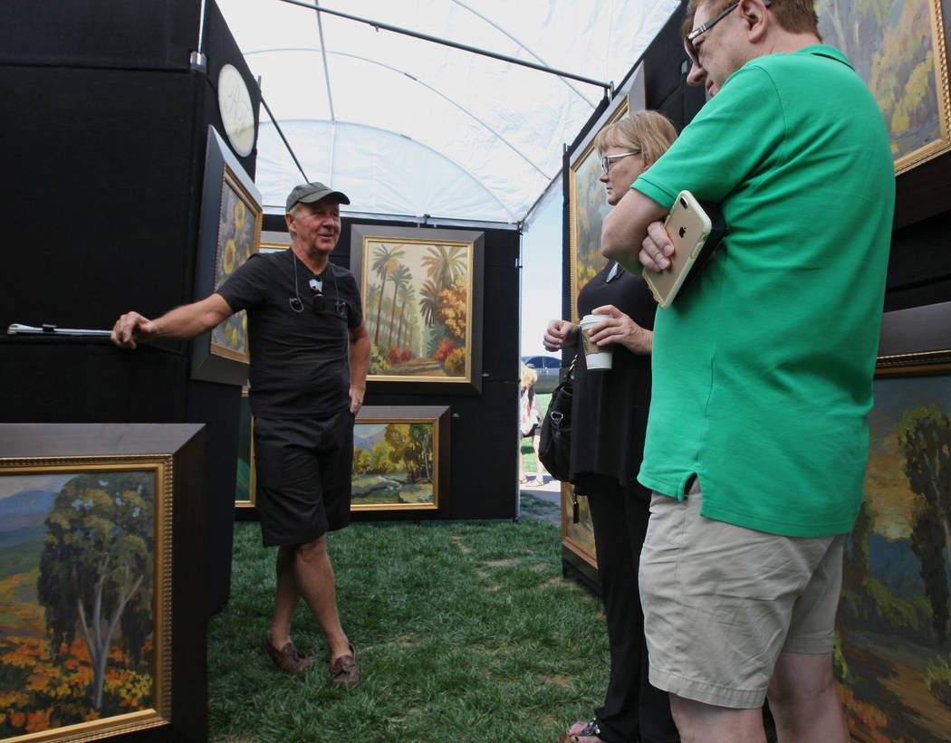 Impressionist painter Robert Ferguson negotiates a price for one of his paintings with Denise Deleo and Richard Adams during the Summerlin Festival of Art at The Lawn at Downtown Summerlin in Las Vegas, Saturday, Oct. 14, 2017. Gabriella Benavidez Las Vegas Review-Journal @latina_ish