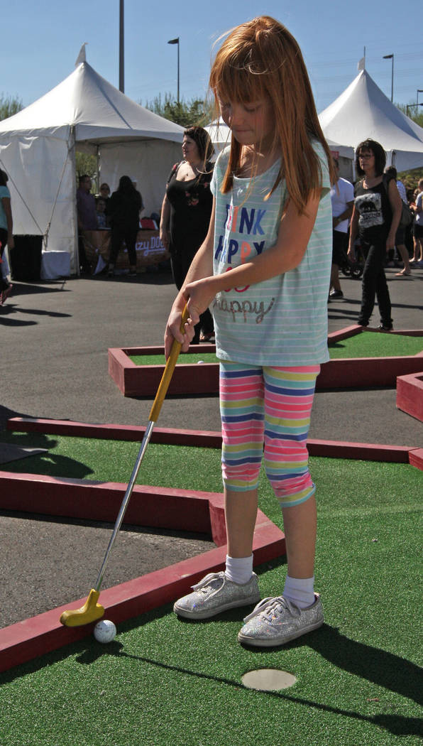 Jovie Jones, 6, lines up for a put during the Summerlin Festival of Art at The Lawn at Downtown Summerlin in Las Vegas, Saturday, Oct. 14, 2017. Gabriella Benavidez Las Vegas Review-Journal @latina_ish