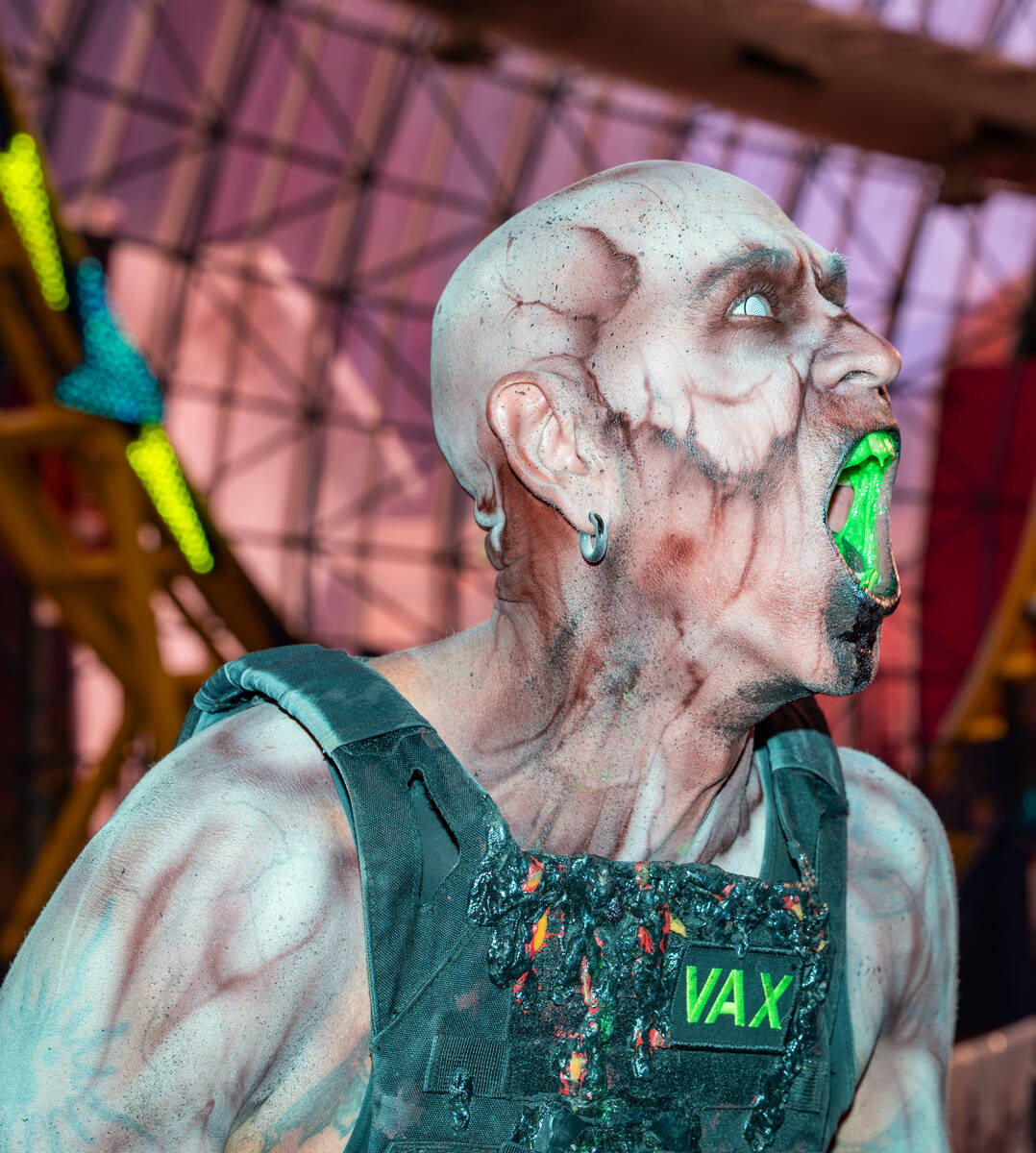 “As soon as they come in, there’s scare zones on both sides and they’ve got haunted houses on both sides of them, too,” she says. “They’re all pretty good-sized houses. We wanted to make sure that with there only being four of them, the experience was a real crowd-pleaser,” she explains, her words occasionally muffled by the roar of roller coasters overhead.