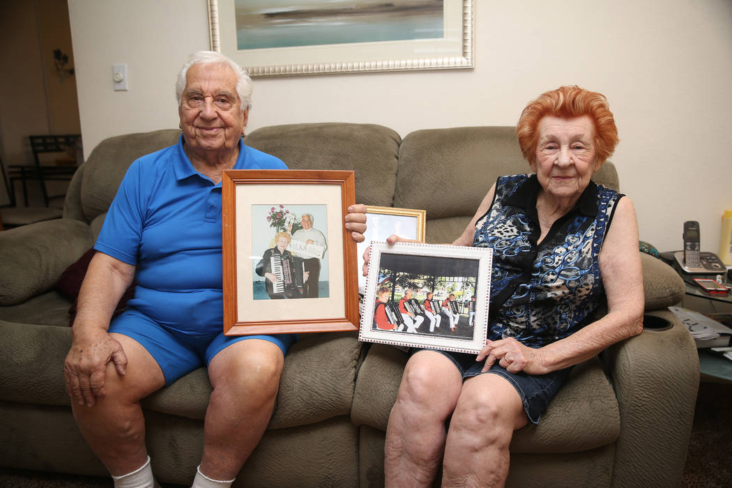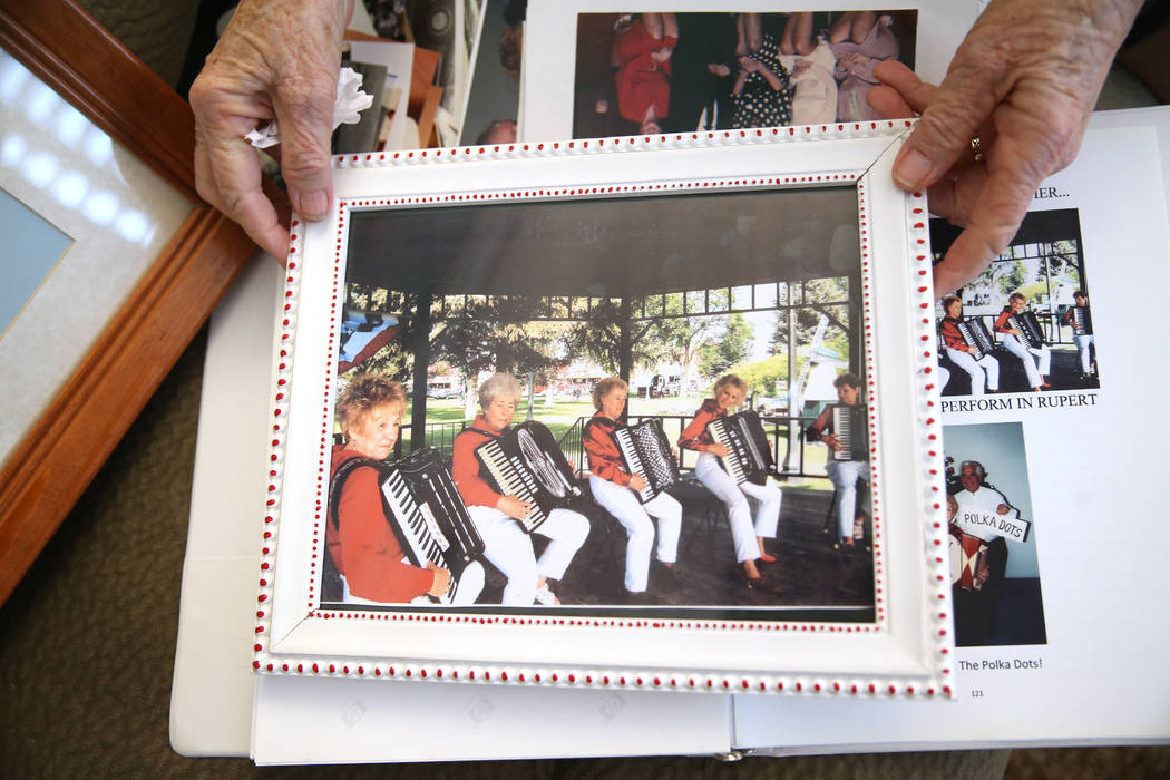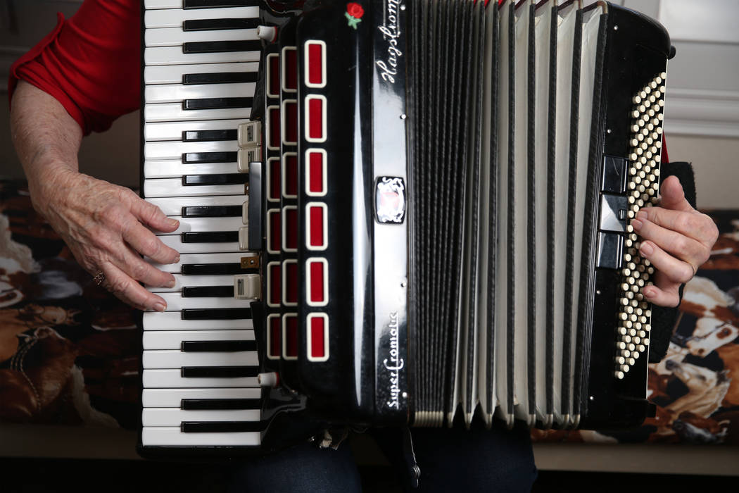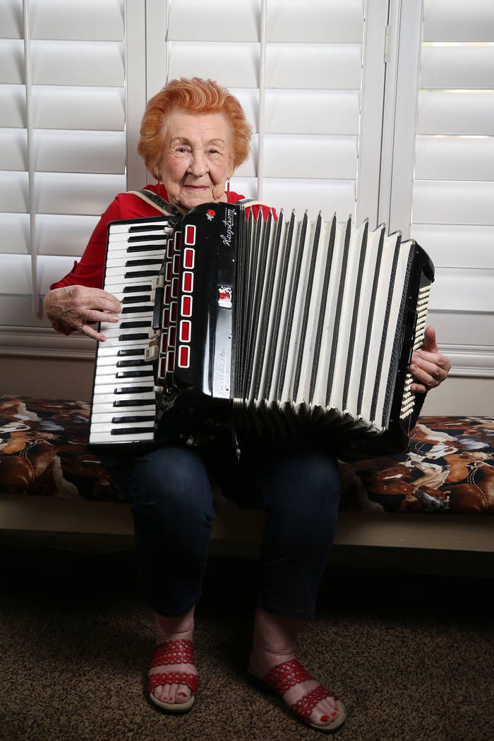 For about five years, she and her husband performed at Las Vegas Valley nursing homes and retirement communities as The Polka Dots, with Etta on accordion and Joe dancing. Recently, she played with fellow accordionists during a monthly gathering at a local restaurant.