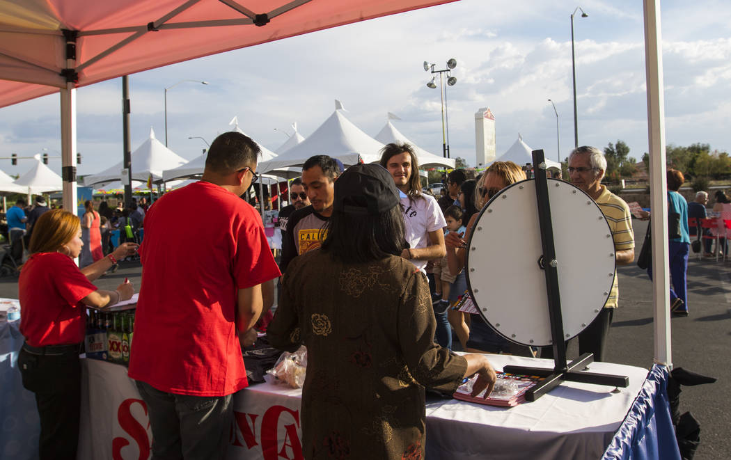 Attendees spin the wheel to win prizes at the Stations Casino booth at the El Tiempo block party at Texas Station hotel-casino in North Las Vegas on Friday, May 5, 2017. Miranda Alam Las Vegas Review-Journal @miranda_alam