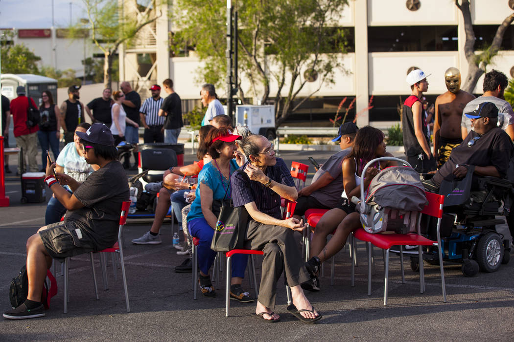 Attendees listen to live music while waiting for the luchador match to start during the El Tiempo block party at Texas Station hotel-casino in North Las Vegas on Friday, May 5, 2017. Miranda Alam Las Vegas Review-Journal @miranda_alam