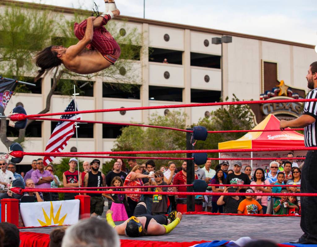 Attendees watch a luchador match during the El Tiempo block party at Texas Station hotel-casino in North Las Vegas on Friday, May 5, 2017. Miranda Alam Las Vegas Review-Journal @miranda_alam