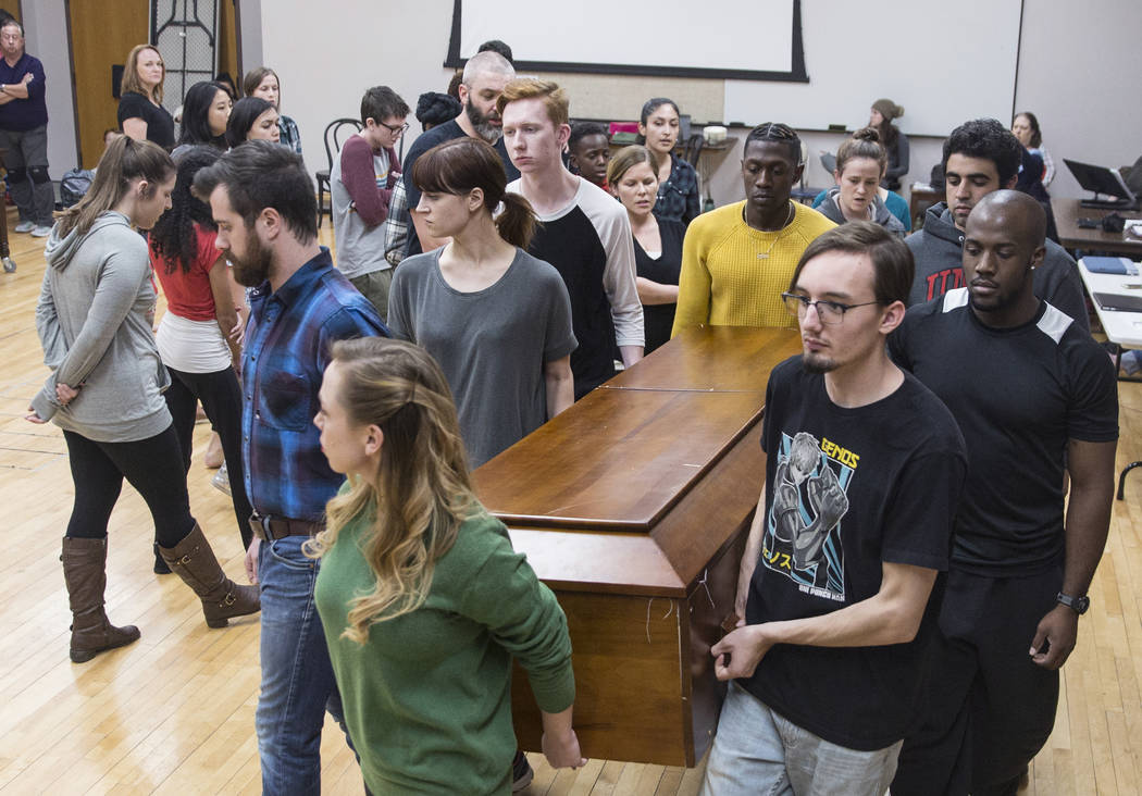 The Nevada Conservatory Theatre rehearses “A Christmas Carol,” offering a contemporary twist on the original Charles Dickens’ Victorian-era tale on Tuesday, Nov. 14, 2017, at the Alta Ham Fine Arts Building, at UNLV, in Las Vegas. Benjamin Hager Las Vegas Review-Journal @benjaminhphoto