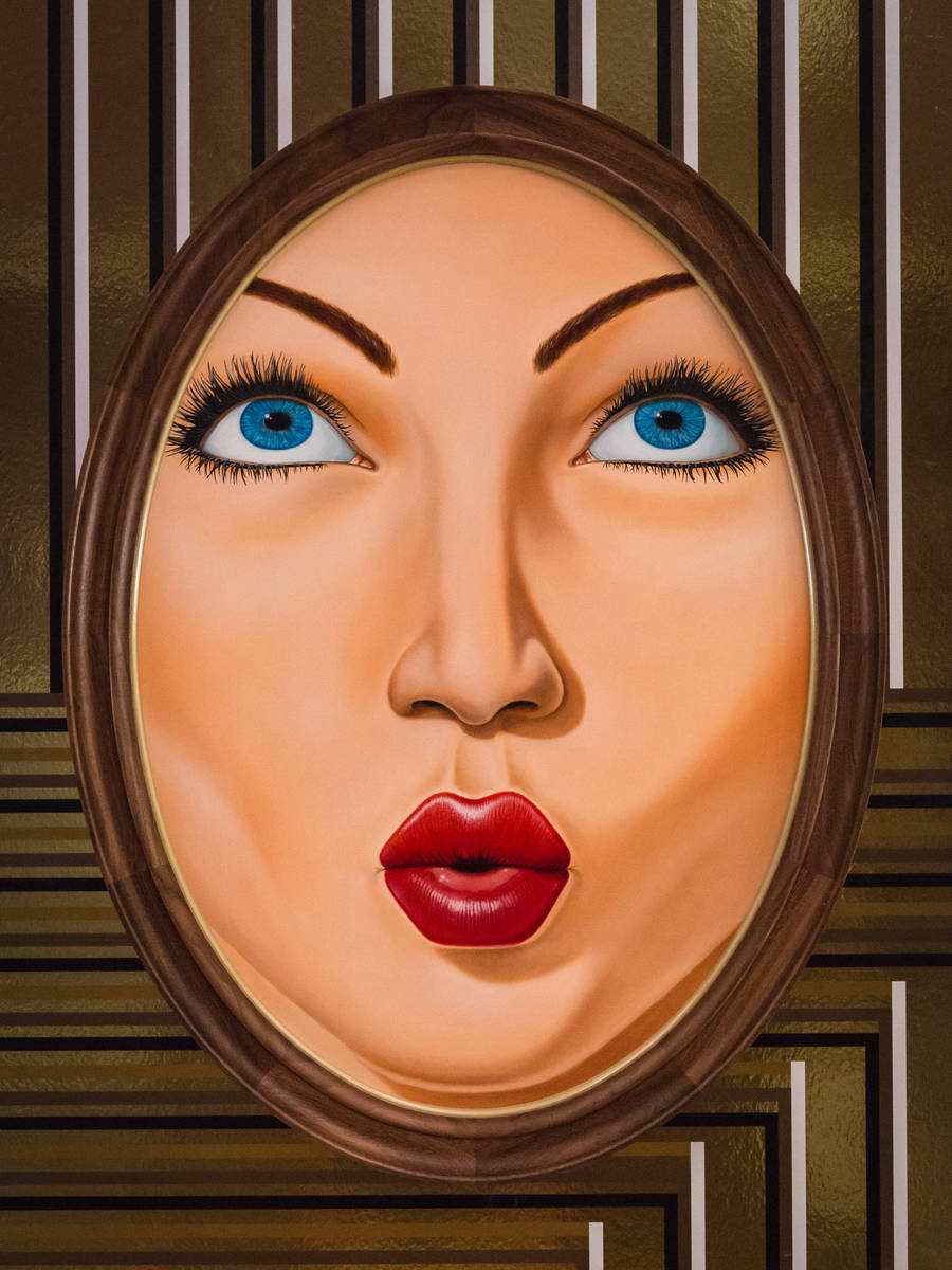 “My inspiration was simple — every beautiful showgirl I’ve ever seen grace the stage,” she says. “Embodied in the eyes and face, all the flirtatious, cheeky, zany humor that is a constant part of the appeal and allure of Las Vegas.”