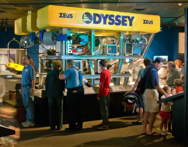 Interactive elements range from a working robotic manipulator arm — where guests can test their mettle at retrieving coins — to full-scale replicas of the equipment Odyssey workers use to discover shipwrecks around the world.