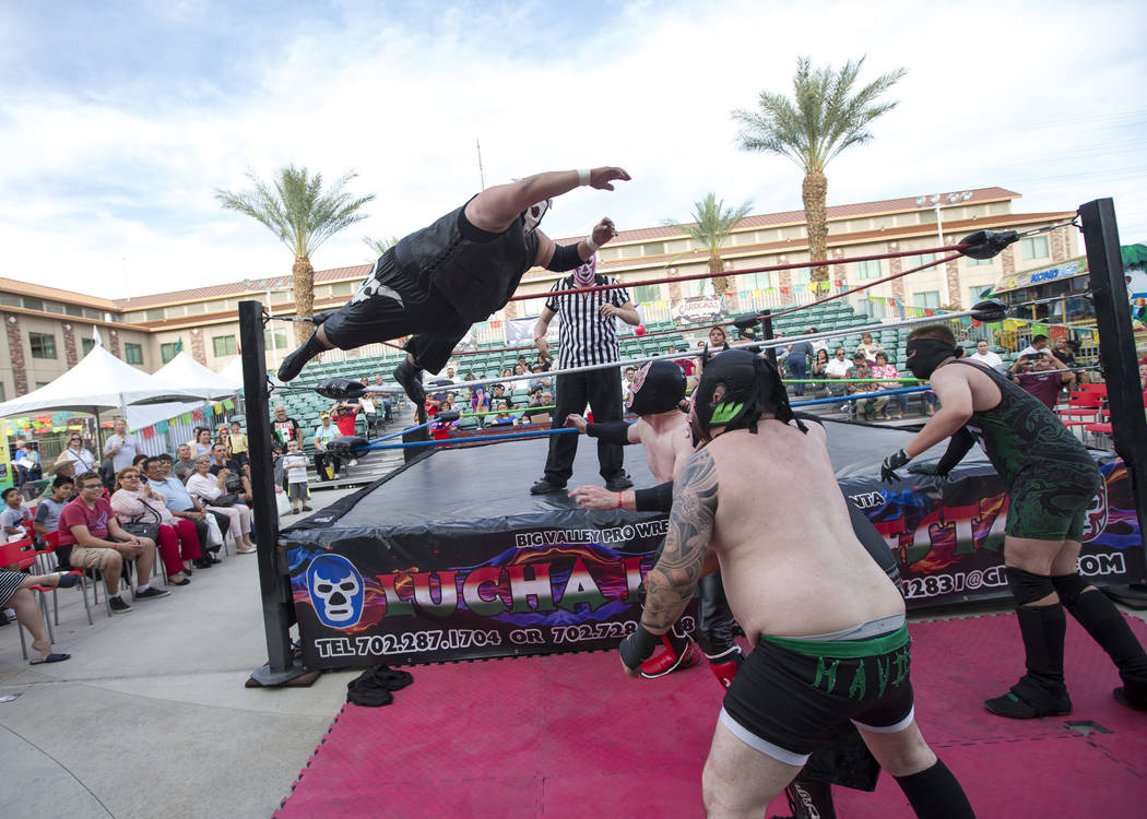 The free event featured live mariachi music, dance performances, lucha libre wrestling matches, food trucks, face painting and more. Cardenas presented the event. Sponsors included Harmony Homes, Eltiempolv.com and the Review-Journal.
