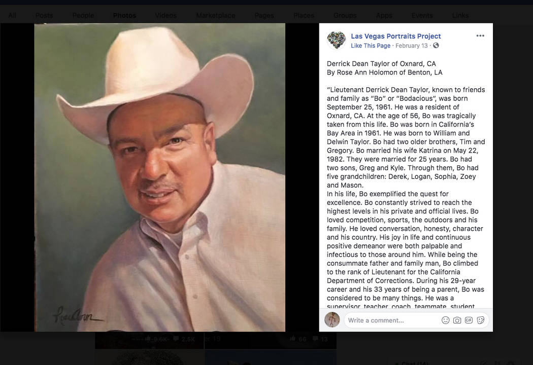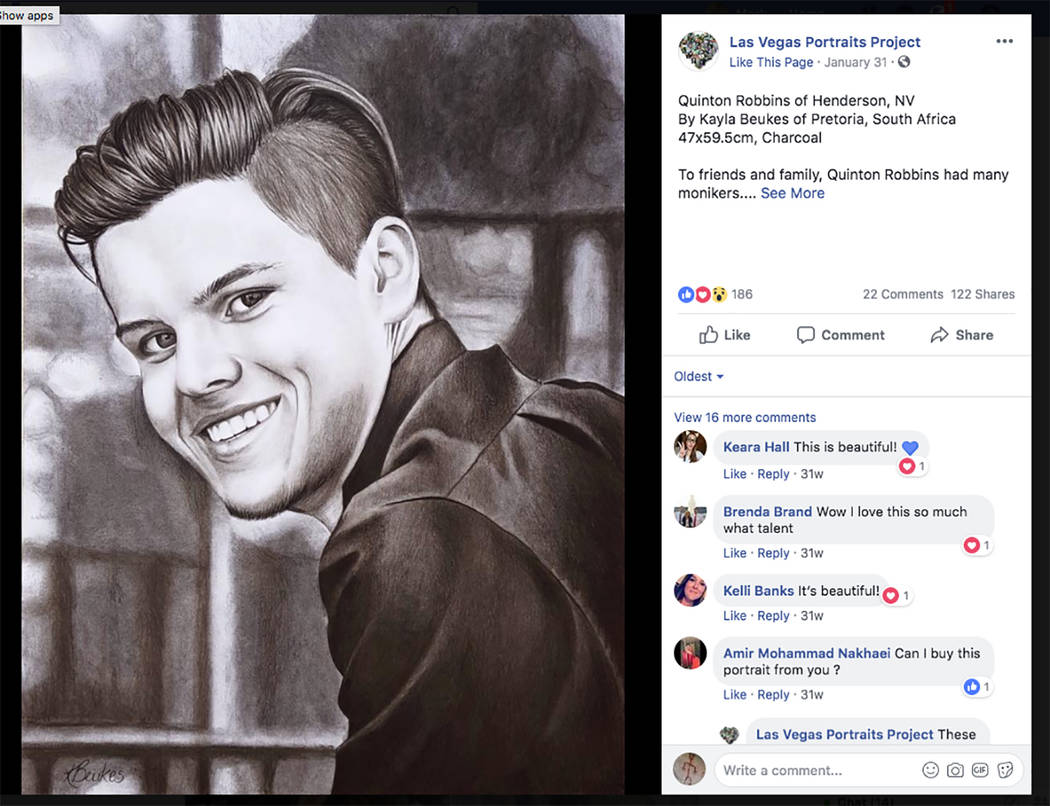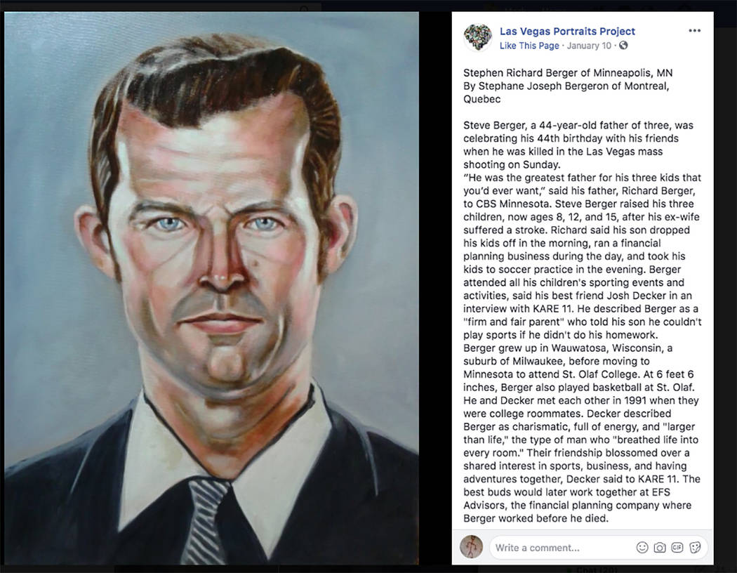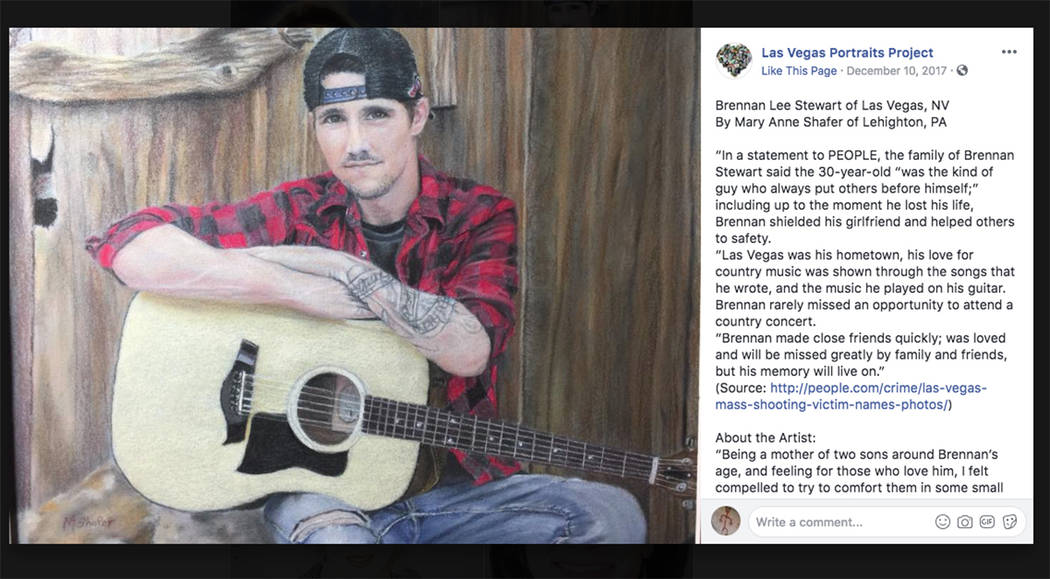 When the exhibition here ends, portraits will be sent to victims’ families with the help of the Vegas Strong Resiliency Center. For many artists, that will mark their first contact with families.