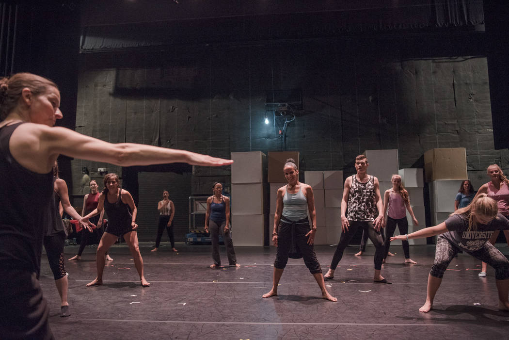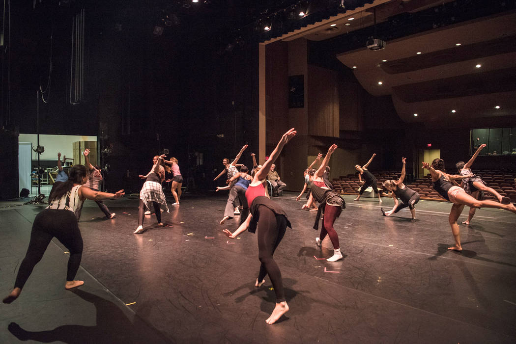 About 30 dancers gathered onstage, and Cynthia DuFault stood in front.
