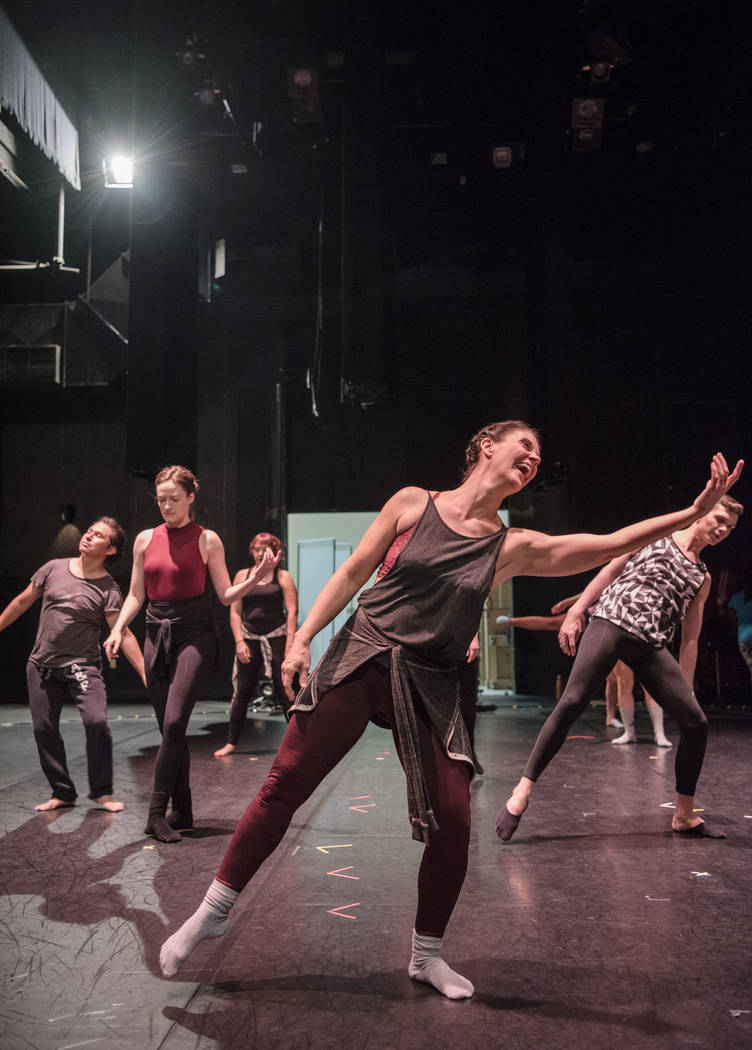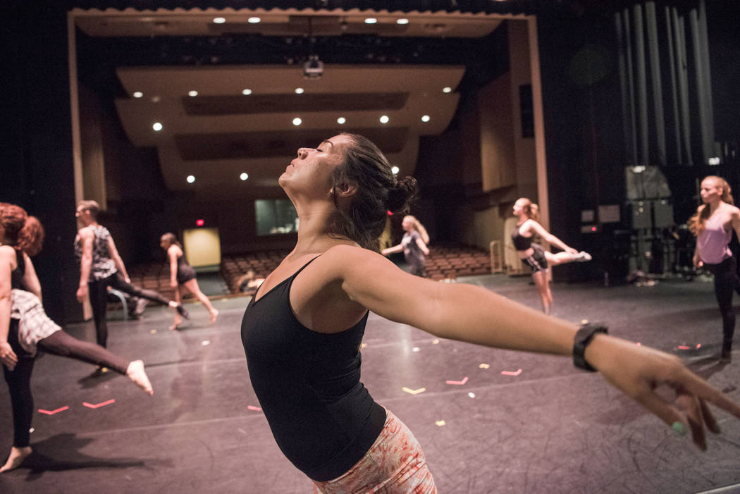 Onstage Saturday, dancers balanced on their left legs, while stretching their right legs in the air. They slid across the stage floor in multicolored tights and tank tops.