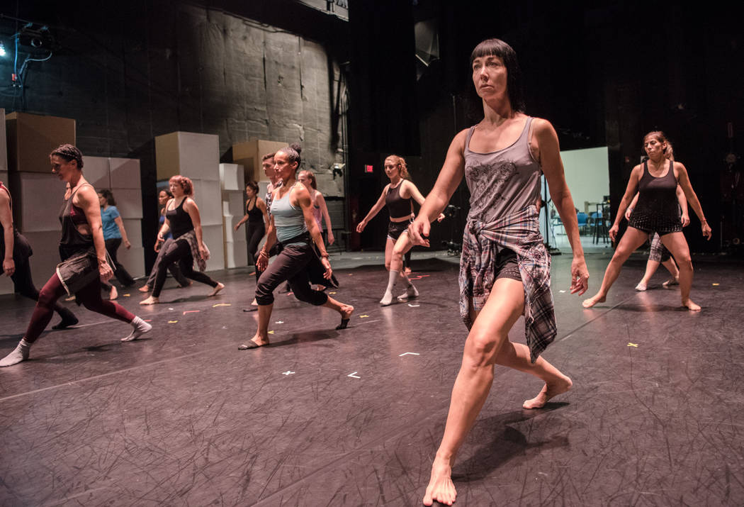 About 30 dancers gathered onstage, and Cynthia DuFault stood in front.