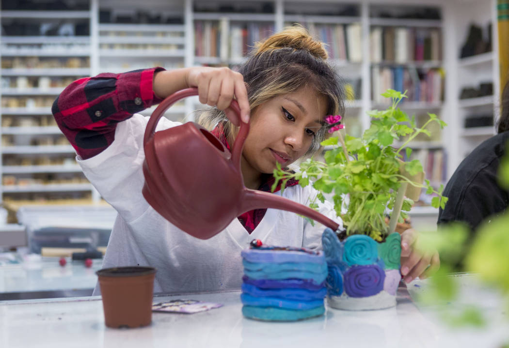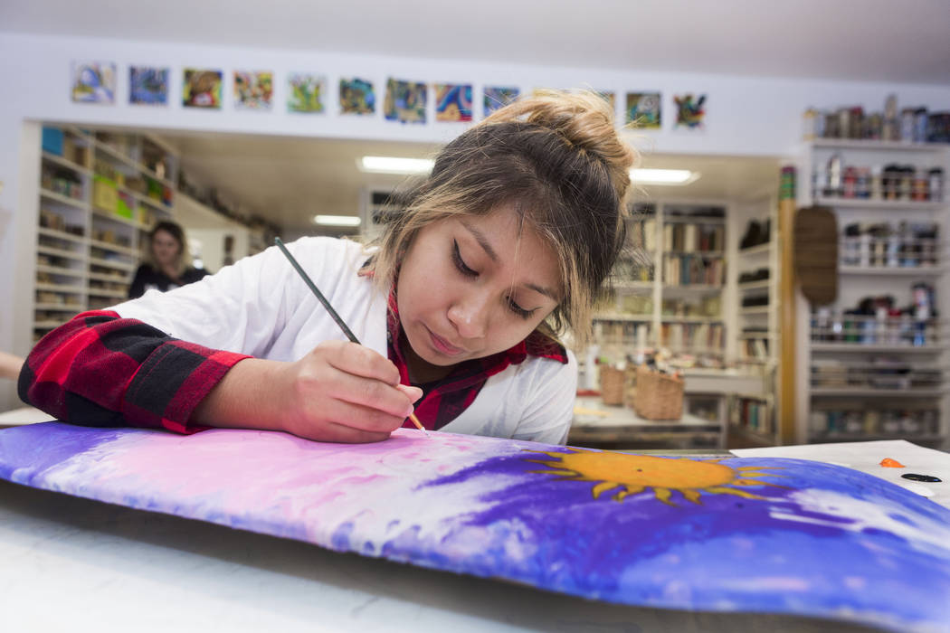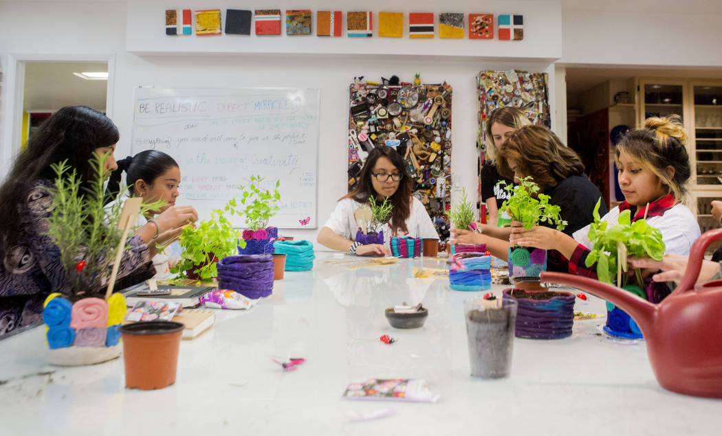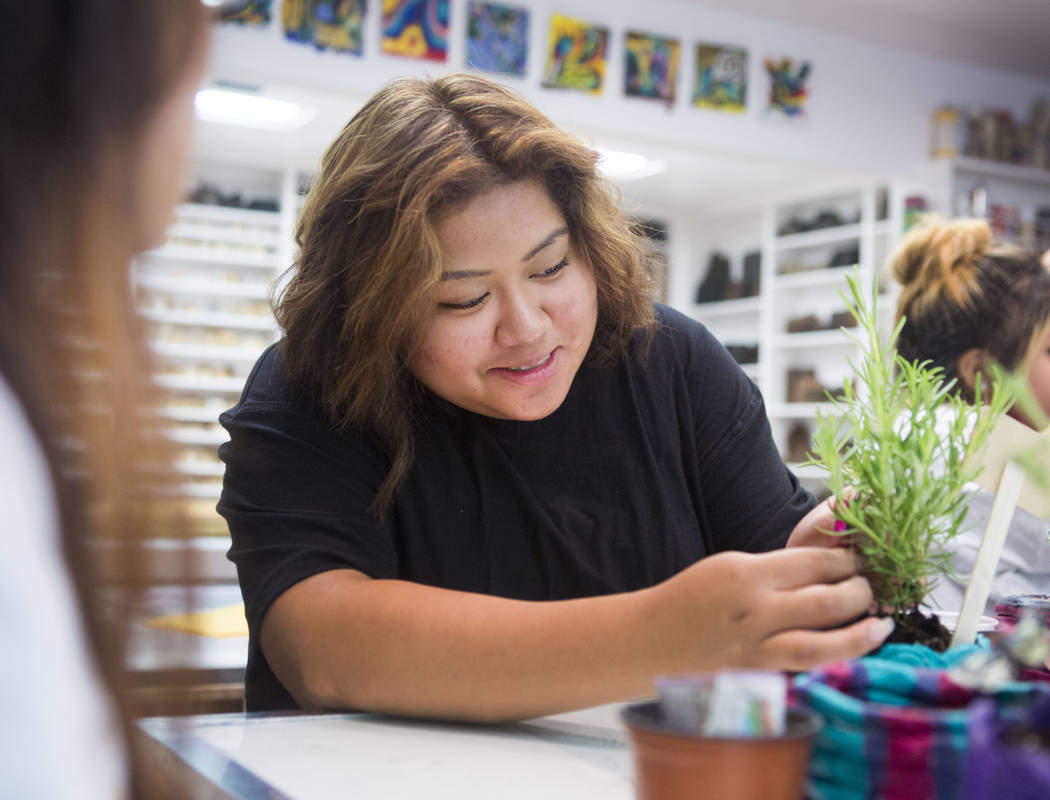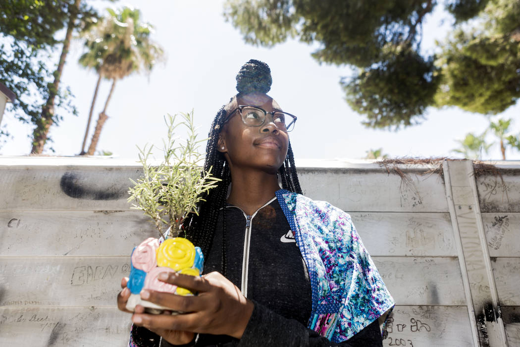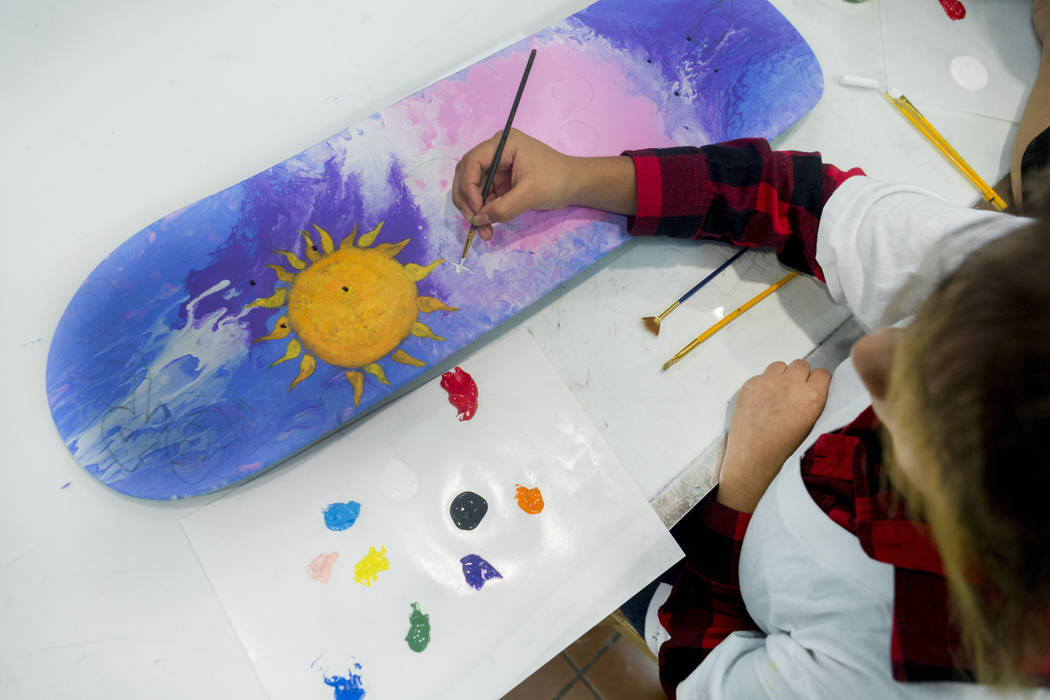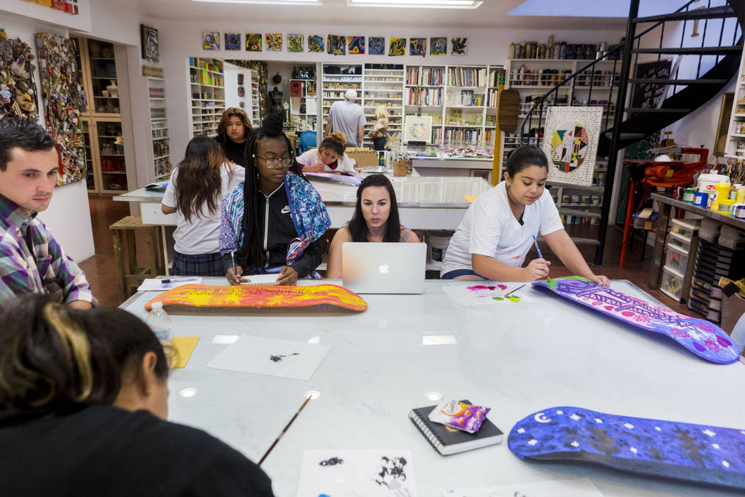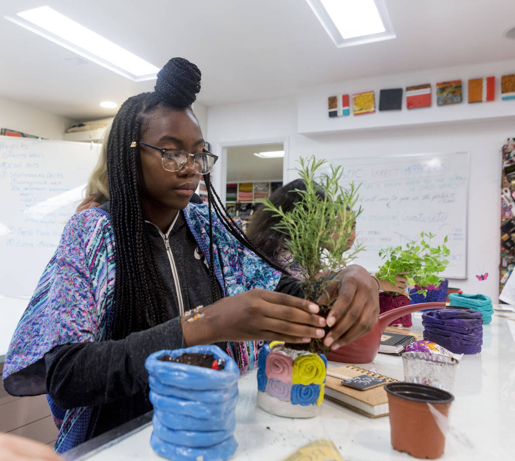 Joyce’s family is keeping her work alive by continuing to offer lessons in her home, which family and friends know affectionately as the “House of Straus.” Last week, students from Core Academy spent a day planting herbs and flowers in coiled clay pots they had made, learning Gelli plate printing, working with fused glass and designing skateboards.