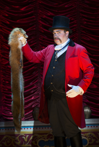 Based on the same novel, “Gentleman’s Guide” also employs the same casting approach. Quick-witted, quick-change chameleon John Rapson portrays all eight doomed D’Ysquiths with irresistible glee, from haughty Lord Adalbert (who sings the aptly titled “I Don’t Understand the Poor”) to determined do-gooder Lady Hyacinth, vowing to outdo rival philanthropists so that “every dilettante will envy me and want a colony of lepers of her own.”