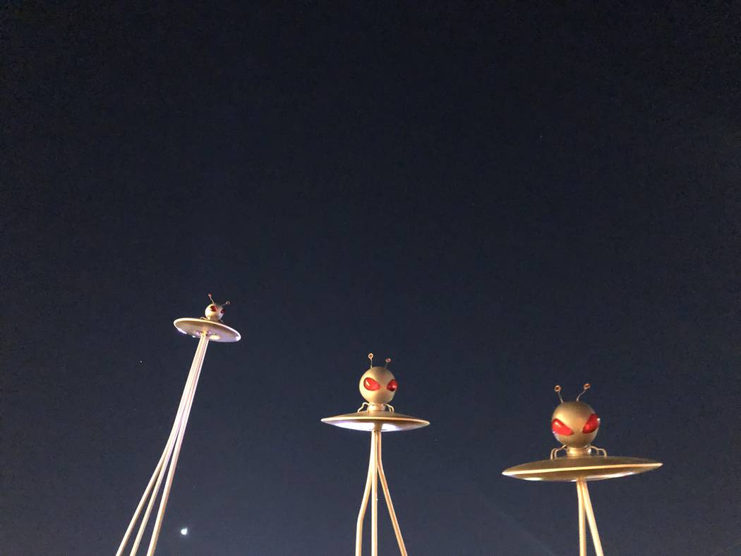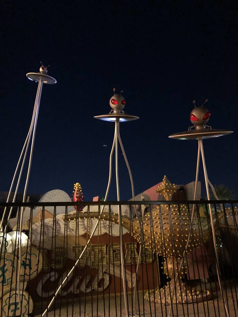 Martians from “Mars Attacks!” at “Lost Vegas: Tim Burton @ The Neon Museum presented by the Engelstad Foundation.” (Janna Karel Las Vegas Review-Journal)