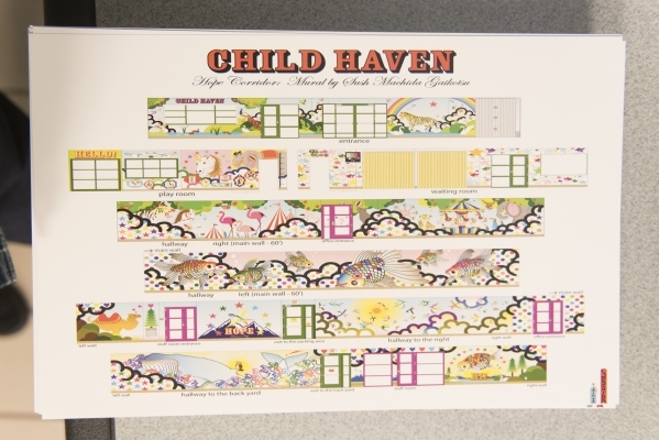 Machida's hand-painted murals were dedicated Thursday; they take up 2,000 square feet of Child Haven wall space. (And took the artist seven months to complete.)