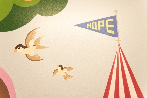 The mural's title: "Hope Corridor." (Although the images stretch beyond the corridors to include the entry area and waiting rooms.)