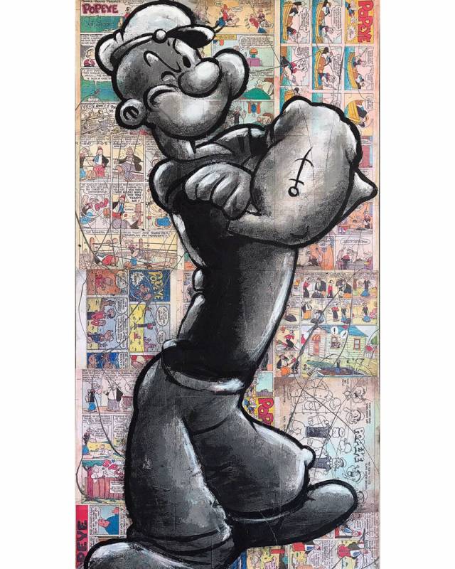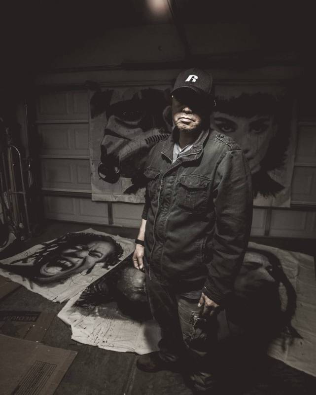 In First Friday’s featured artist spotlight: Mel Balatbat of Ikonic Arts. A self-taught artist specializing in mixed media, Balatbat builds hardboard canvases from Masonite panels, using sheet music, comic strips and map pages as backgrounds for his pop-culture portraits.