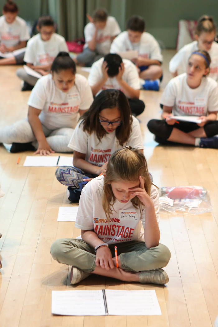 Decked out in white Camp Broadway T-shirts emblazoned with the motto “Develop Your Character,” the campers play a specialized form of “Simon Says” as leader Louise Lemos and fellow instructors quiz them on stage geography, asking them to point — literally — upstage, downstage, stage left and stage right.