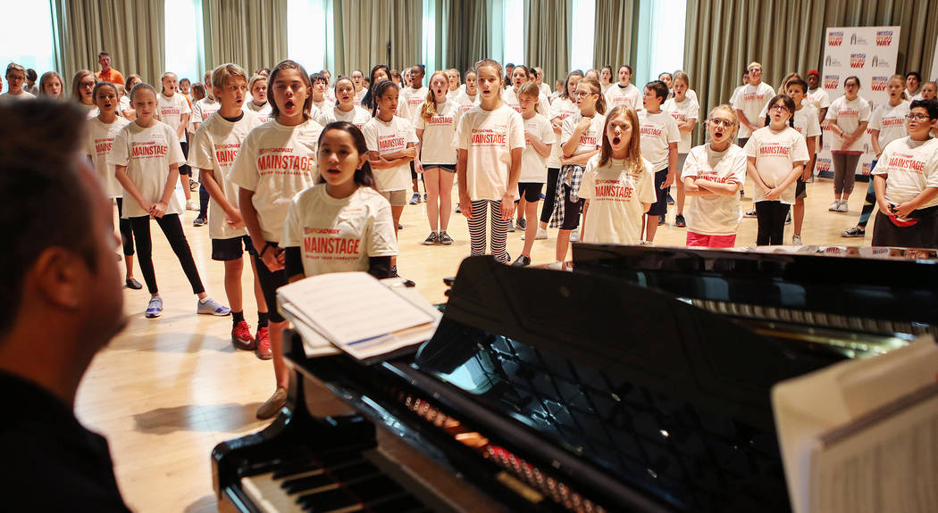 Guiding their singing, Robby Wingfield — whose “day job” involves playing keyboards, saxophone and clarinet for “Baz — Star Crossed Love” at the Palazzo — offers the campers some words of wisdom.