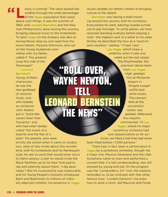 “In some places, we have received standing ovations before playing a note,” Bernstein said, in the 2009 book “Picturing Las Vegas” by Linda Chase, who grew up in Southern Nevada.