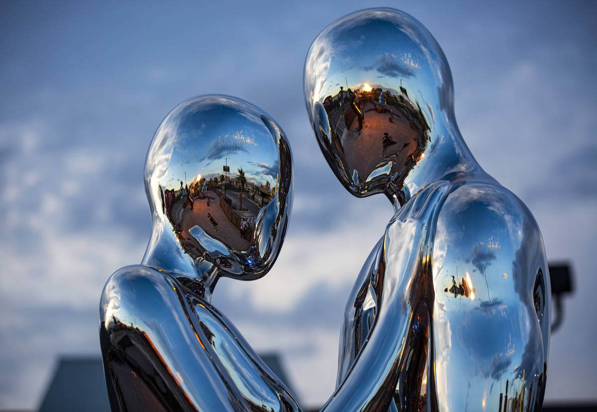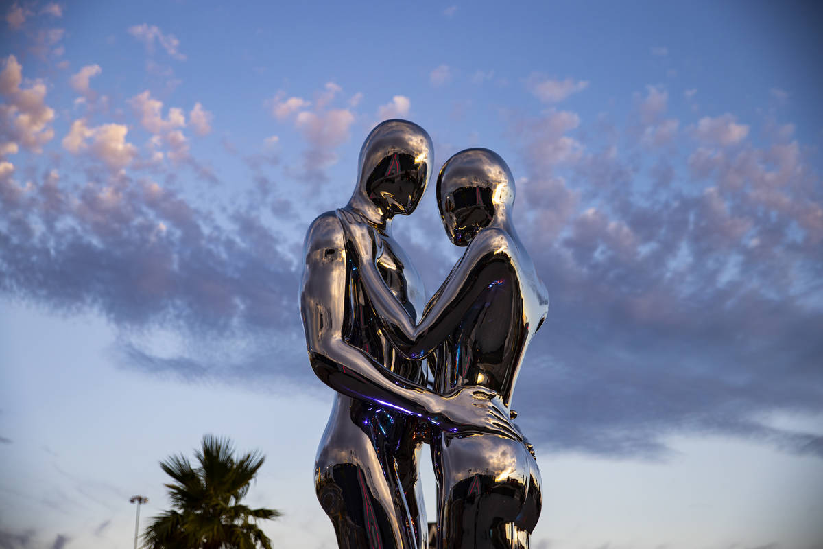 Benisty created “In Every Lifetime I Will Find You,” a 25-foot-tall mirrored sculpture of two figures hugging or dancing or holding each other. Benisty says it is up to the viewer.