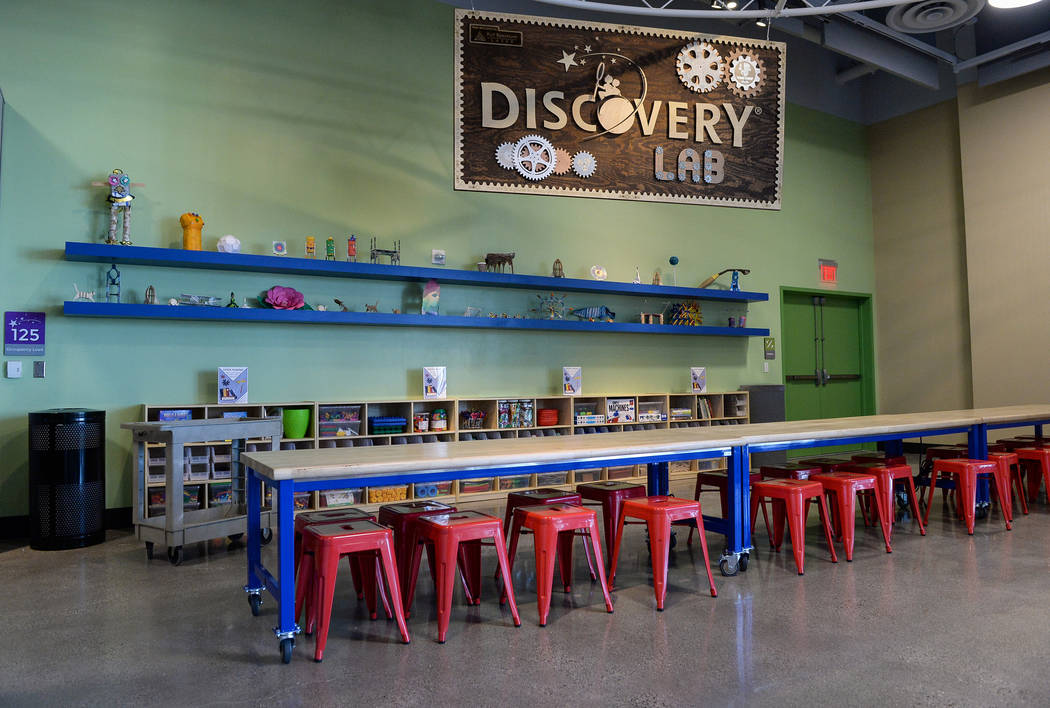 The lab, which will open Saturday and is in the former It’s Your Choice area, is divided into an open-making area for self-guided play and a work-space for guided activities.