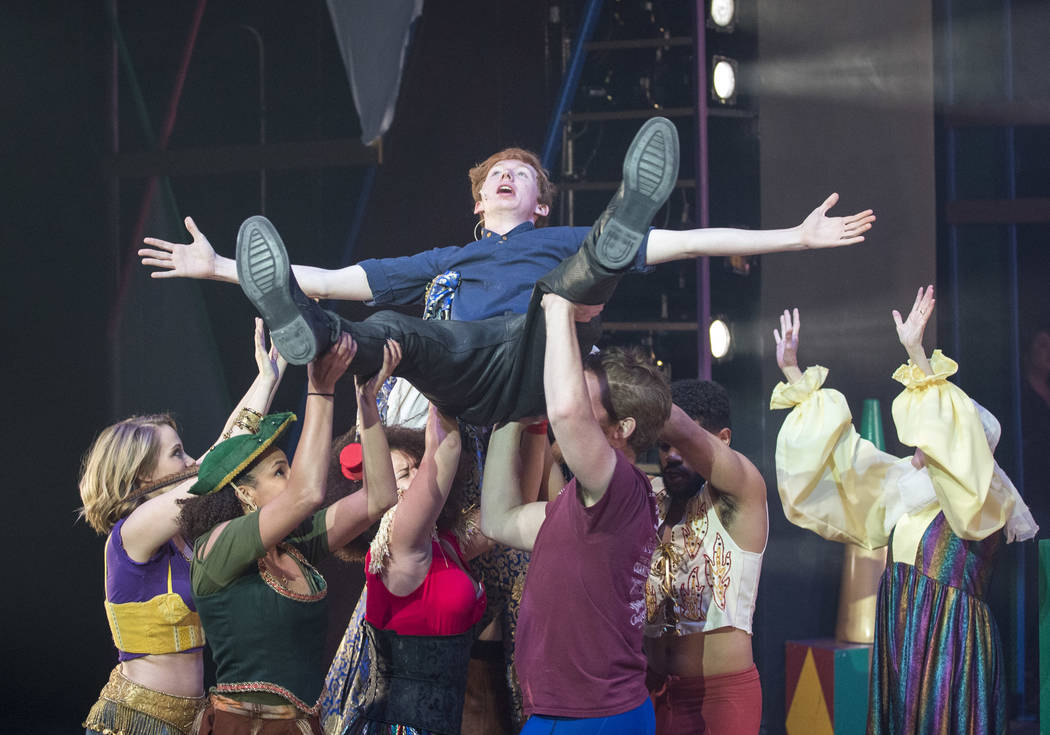 The Tony-winning revival, by contrast, employed a literal life’s-a-circus structure, transforming Pippin’s picaresque journey of self-discovery into a Cirque-style carnival featuring acrobats, jugglers, tumblers and trapeze artists.