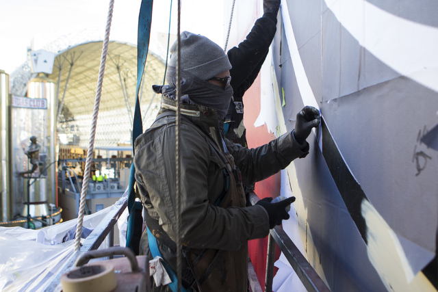 Street artist Shepard Fairey is creating a mural on The Plaza in downtown Las Vegas