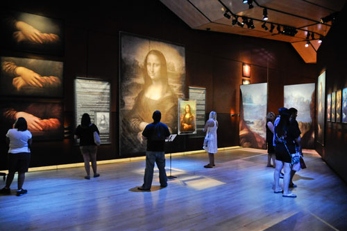 Though none of the pieces exhibited are authentic da Vinci works, they are masterful likenesses. You can see high-resolution photographs of the "Mona Lisa" in both her current state and in what Cotte believes is the painting's original state. His research enabled him to identify the true colors of the artwork, which have faded and changed over time.