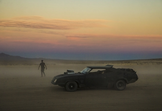 A replica of the car driven in the Mad Max films, a 1973 Ford Falcon XB GT Coupe, sits outside the gates of the seventh annual Wasteland Weekend on Saturday, Sept. 24, 2016, in California City, Calif. The four day, post-apocalyptic festival takes place in the Mojave desert and is inspired by director George Miller’s Mad Max films. Benjamin Hager/Las Vegas Review-Journal