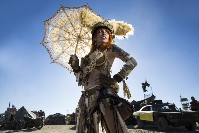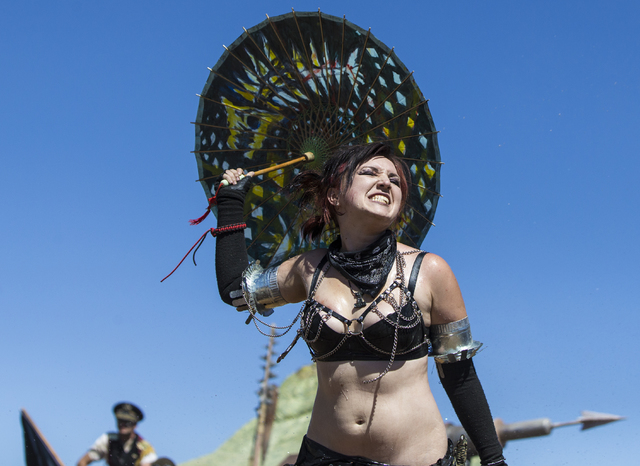 Keisha Mock poses for a photo during the seventh annual Wasteland Weekend on Saturday, Sept. 24, 2016, in California City, Calif. The four day, post-apocalyptic festival takes place in the Mojave desert and is inspired by director George Miller’s Mad Max films. Benjamin Hager/Las Vegas Review-Journal