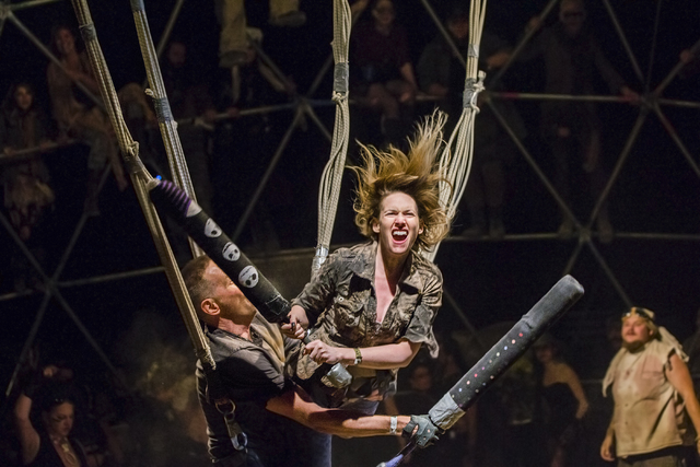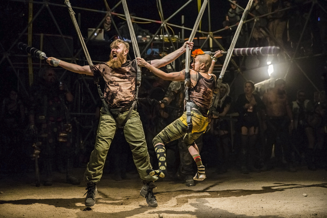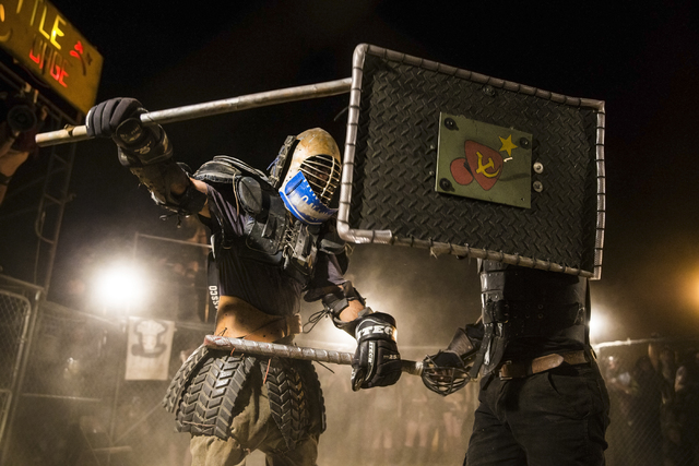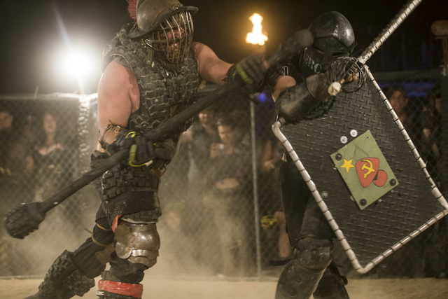 Festival goers battle in a replica of the thunderdome during the seventh annual Wasteland Weekend on Friday, Sept. 23, 2016, in California City, Calif. The four day, post-apocalyptic festival takes place in the Mojave desert and is inspired by director George Miller’s Mad Max films. Benjamin Hager/Las Vegas Review-Journal