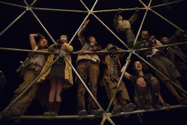 Festival goers cheer from the second level of a replica of the thunderdome during the seventh annual Wasteland Weekend on Friday, Sept. 24, 2016, in California City, Calif. The four day, post-apocalyptic festival takes place in the Mojave desert and is inspired by director George Miller’s Mad Max films. Benjamin Hager/Las Vegas Review-Journal