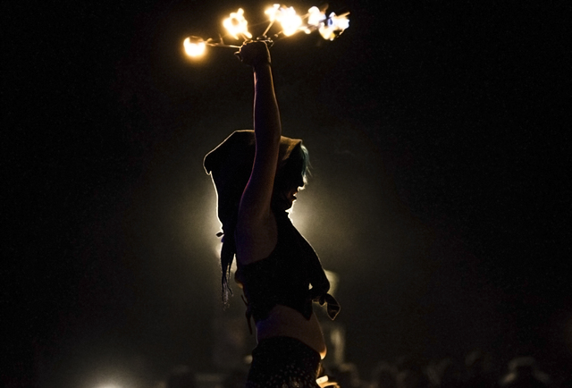 Fire dancers from Burning Sensation perform during the seventh annual Wasteland Weekend on Friday, Sept. 23, 2016, in California City, Calif. The four day, post-apocalyptic festival takes place in the Mojave desert and is inspired by director George Miller’s Mad Max films. Benjamin Hager/Las Vegas Review-Journal