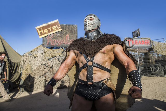 Jason Sperle, known as T-Wrex, poses for a photo during the seventh annual Wasteland Weekend on Saturday, Sept. 24, 2016, in California City, Calif. The four day, post-apocalyptic festival takes place in the Mojave desert and is inspired by director George Miller’s Mad Max films. Benjamin Hager/Las Vegas Review-Journal