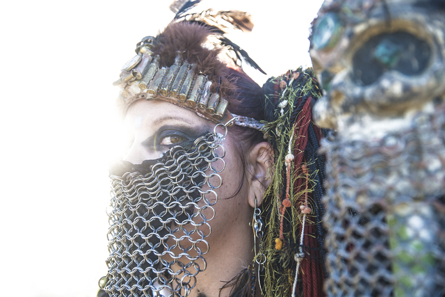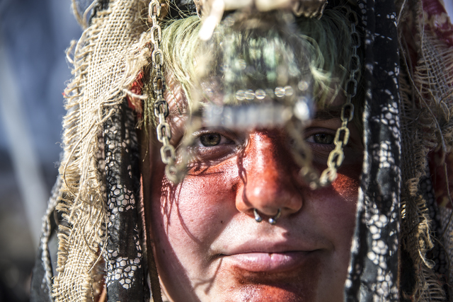 Vivid Vivka, known as Dust Bunny, poses for a photo during the seventh annual Wasteland Weekend on Saturday, Sept. 24, 2016, in California City, Calif. The four day, post-apocalyptic festival takes place in the Mojave desert and is inspired by director George Miller’s Mad Max films. Benjamin Hager/Las Vegas Review-Journal