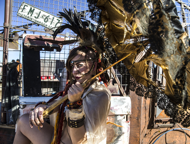 Calixta Cheers poses for a photo during the seventh annual Wasteland Weekend on Saturday, Sept. 24, 2016, in California City, Calif. The four day, post-apocalyptic festival takes place in the Mojave desert and is inspired by director George Miller’s Mad Max films. Benjamin Hager/Las Vegas Review-Journal