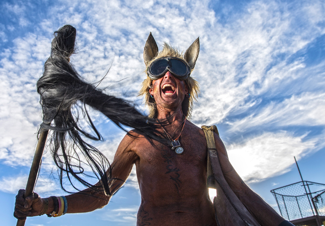 Steve Scholz competes in the post-apocalyptic swimsuit contest during the seventh annual Wasteland Weekend on Saturday, Sept. 24, 2016, in California City, Calif. The four day, post-apocalyptic festival takes place in the Mojave desert and is inspired by director George Miller’s Mad Max films. Benjamin Hager/Las Vegas Review-Journal