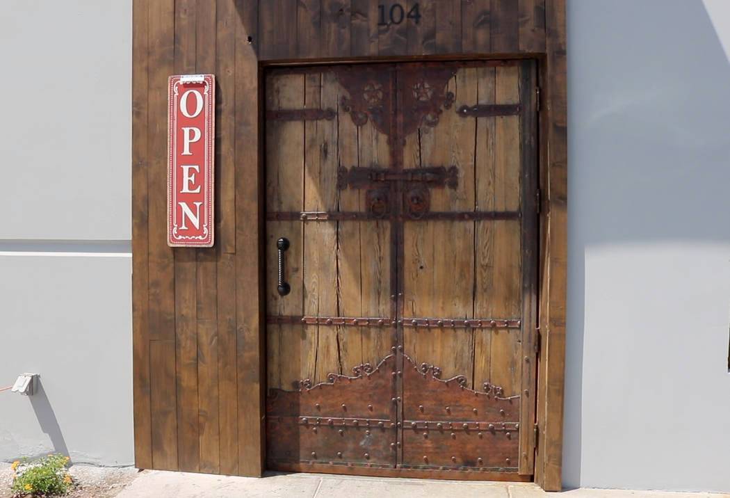 The front dining room of Mas Por Favor Taqueria y Tequila offers casual seating where guests can order street tacos. At the dining room’s back corner is a sliding door with a skull for a handle. Pulling the door open leads visitors down a dim tunnel into a rear lounge, over which two arches — one of roses and one of skulls — soar.