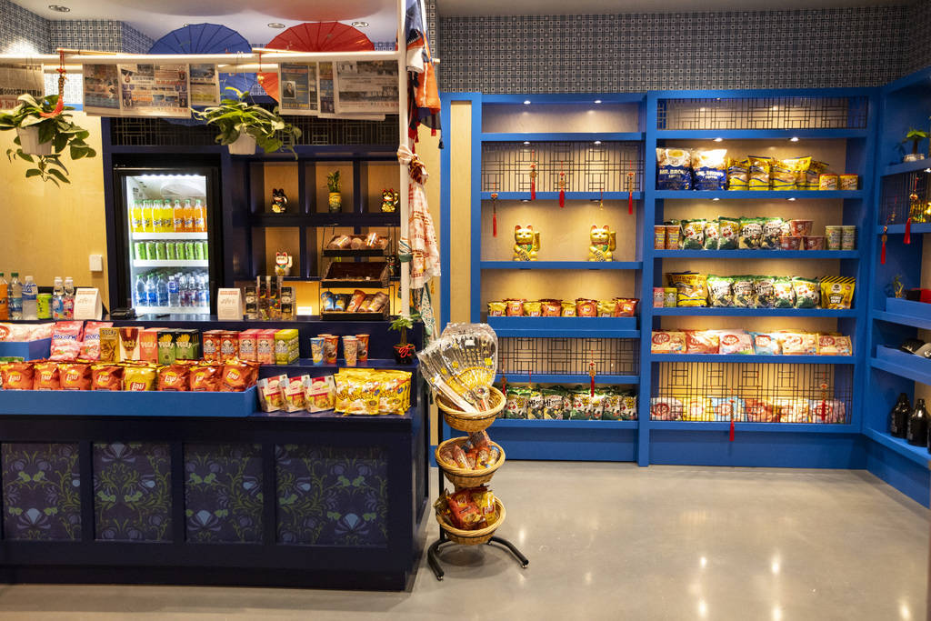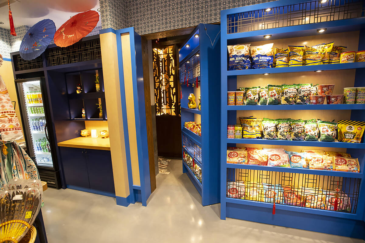 Sandwiched between two food stalls at the Famous Foods Street Food Hall at Resorts World Las Vegas is a little store called Ms. Meow’s Mamak Stall. It sells a small selection of Asian newspapers and snacks. At the back of the shop is a blue shelf that, when pushed, gives way to Here Kitty Kitty Vice Den.