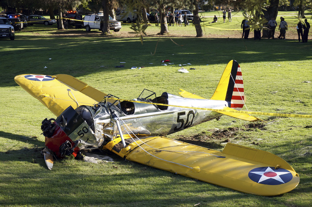 In March 2015, Ford suffered a broken arm and a gashed forehead when his World War II-era trainer crashed on a Los Angeles golf course when it lost power shortly after takeoff.