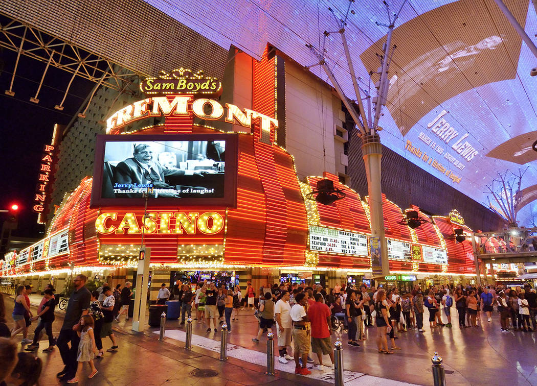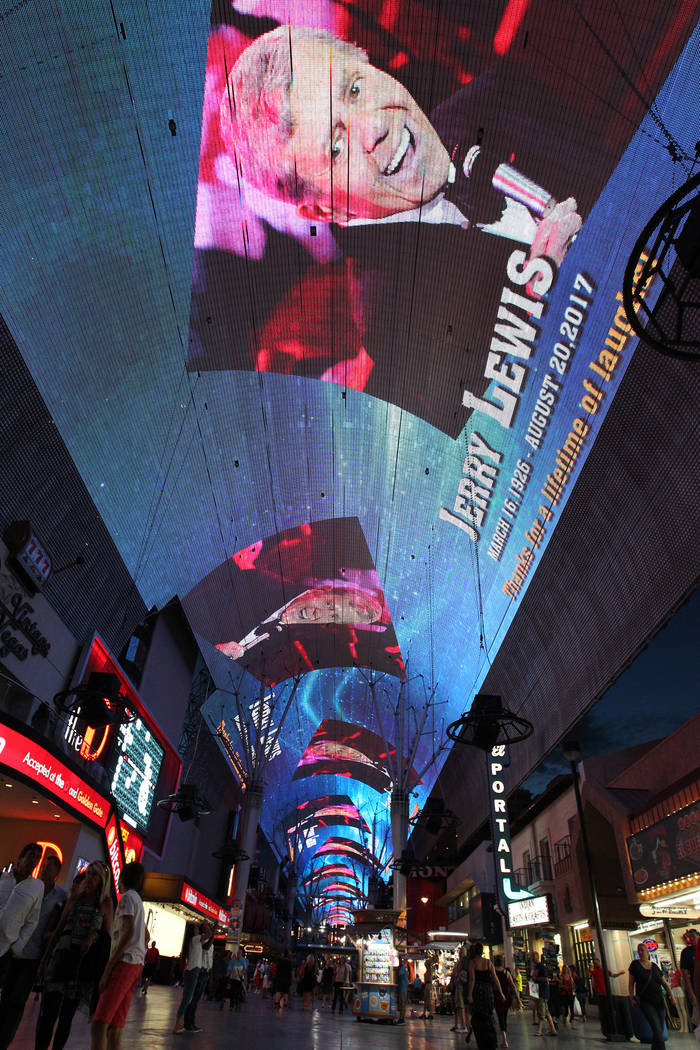When Fanberg learned about the Lewis marquee tribute on the Fremont Street Experience’s Facebook page, a half-hour before it began, he decided “I’ve got to run down and see this,” he noted. “It’s kind of a cool moment.”